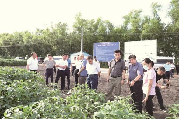 全国政协农业和农村委员会调研组一行在黑龙江省克山县垦地合作大豆大垄密植高产创建示范区调研。