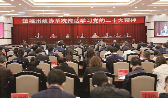 2022年11月1日,楚雄州各级政协集中传达学习党的二十大精神。