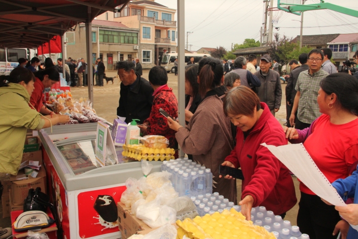 负责实施服务集市移动商店项目的世贸广场、世纪联华超市工作人员忙着摆放好商品,供村民们挑选。“酒酿饼还是热的呢!”“包子也是热的!”村民们惊喜地说。家门口的集市受到了村民们的欢迎,大家纷纷买起了吃的食品、用的生活用品。“不用坐车去城里买了,真方便!”村民们纷纷说。