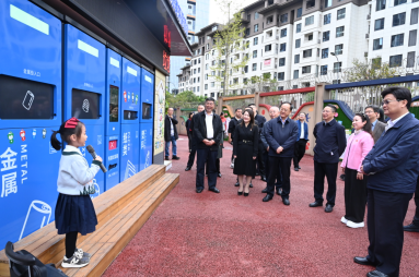 ▲ 四川省政协副主席杜和平率视察组一行在成都市高新区调研垃圾分类设施建设运维、垃圾源头减量、分类宣教基地等情况