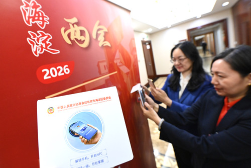 图为1月6日,委员们通过NFC“碰一碰”功能获取会议相关信息。人民政协报·人民政协网记者 齐波摄