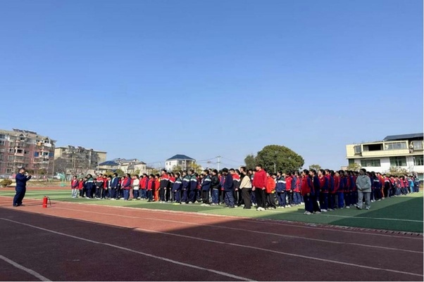 随着湖滨学校校园广播中传来“紧急疏散”的警报声,600余名学生在老师引导下,用衣物捂住口鼻,有序撤离,仅用时1分20秒。消防演习结束后,县消防救援大队相关负责人向师生们,现场演示灭火器的正确使用方法以及“提拔握压”操作要领。